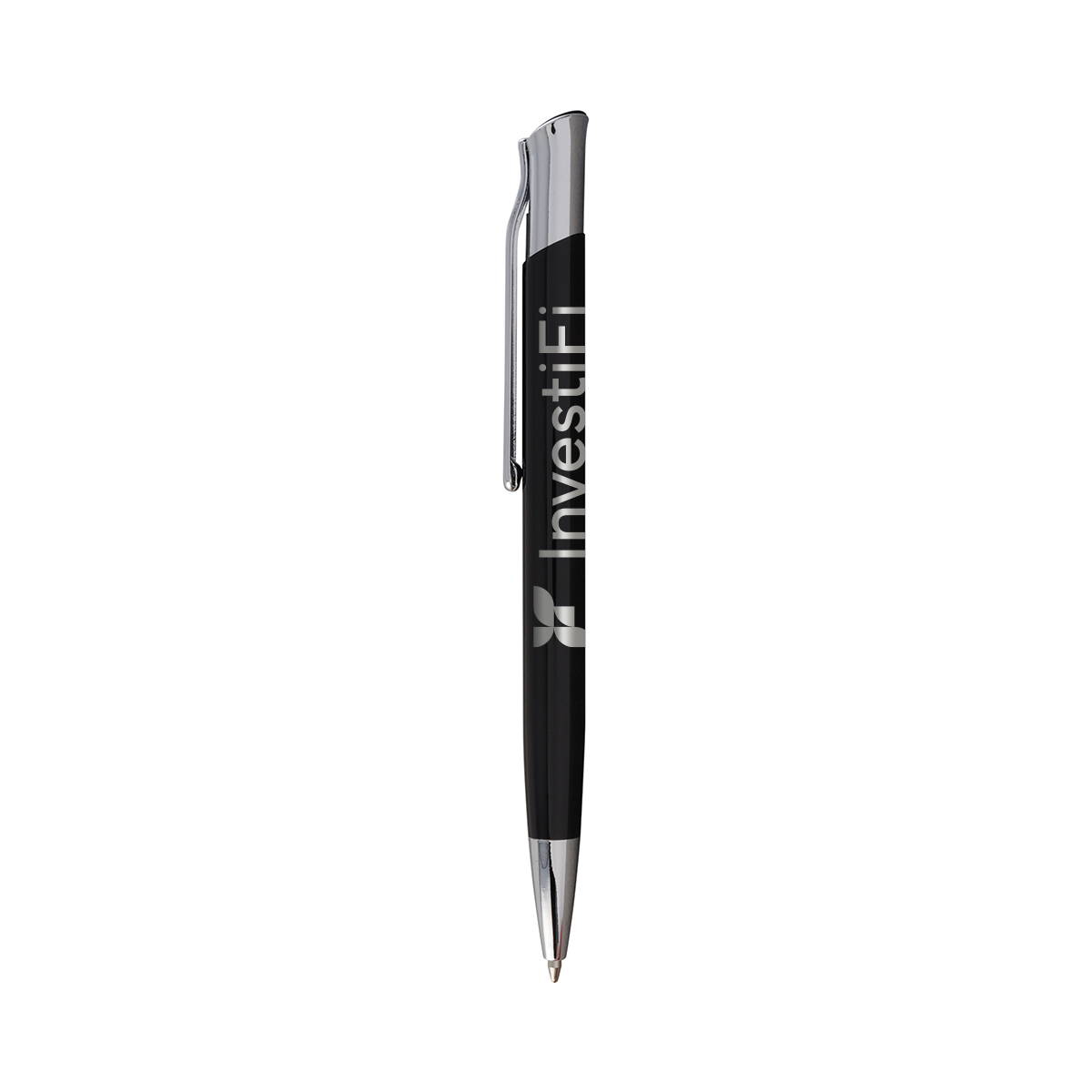 Constructed from metal, this pen is European styled the classic barrel has a high gloss finish. Features include an inclined dome plunger with strong click retraction, chrome accents for high-end appeal and black ink.